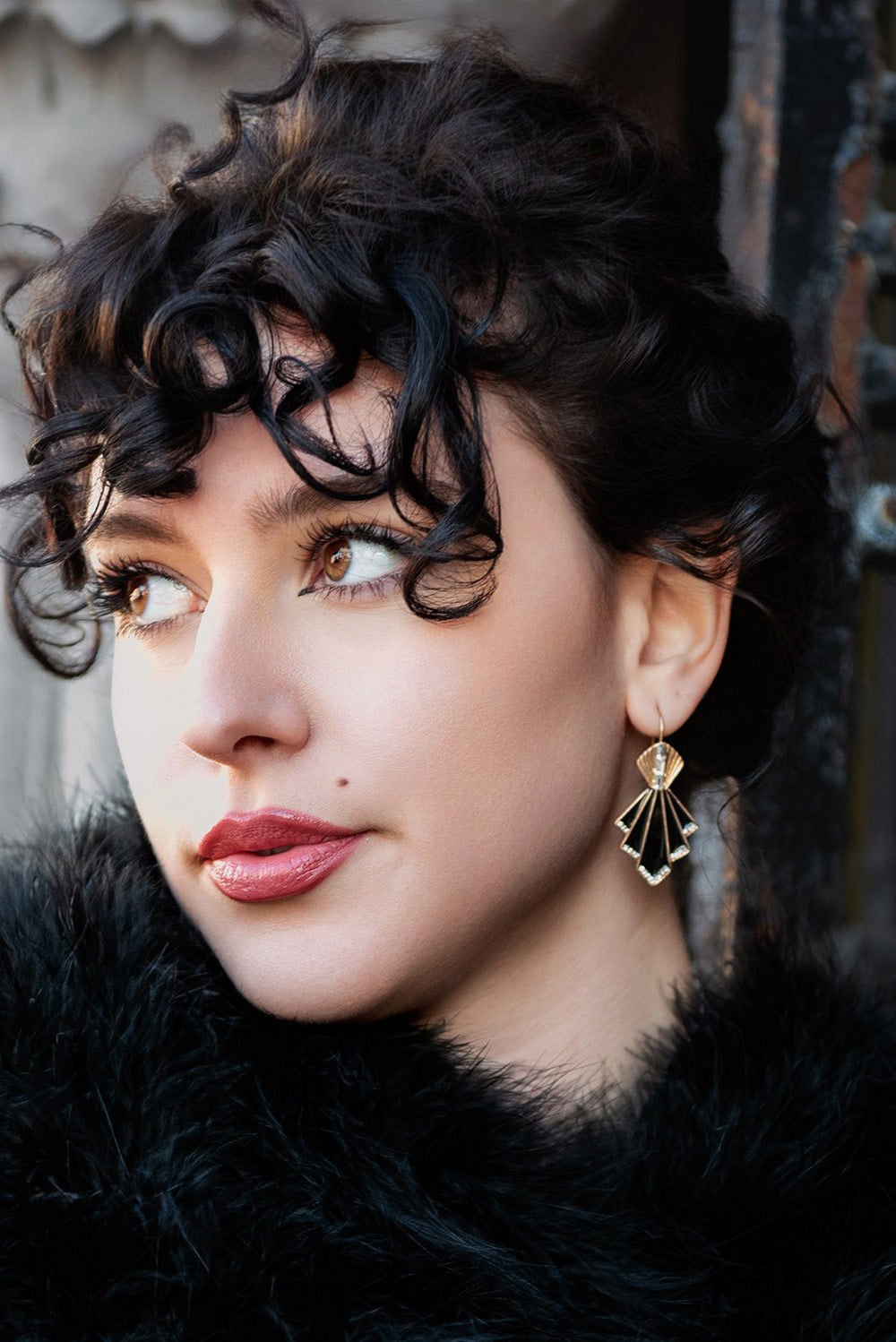 Deco fan earrings in black