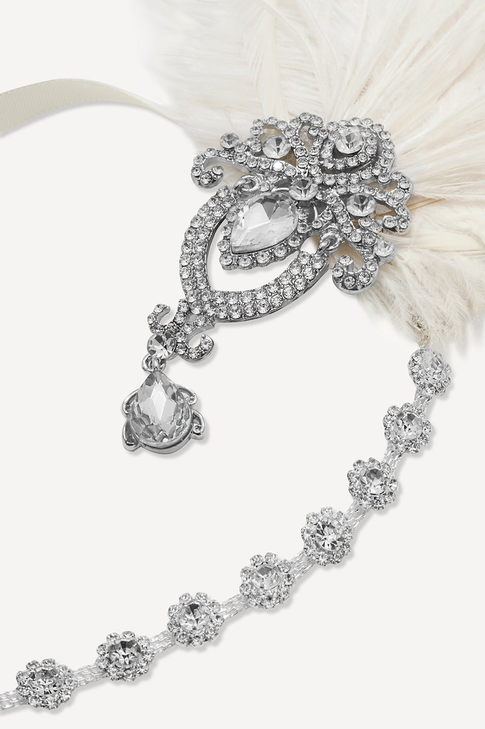 Ivory feather & crystal 1920s Gatsby headband